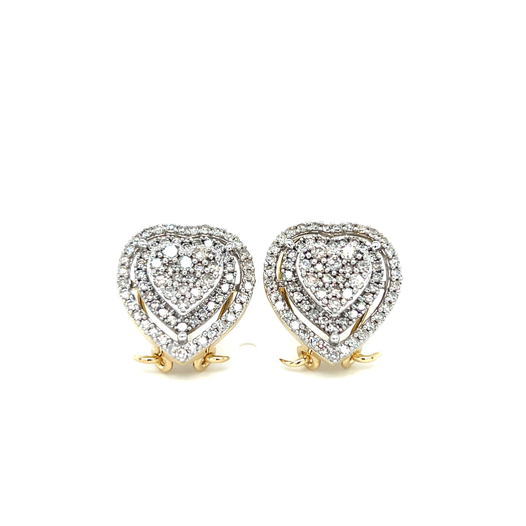 10KT YG Dia 1.02ctw Heart Studs w/ omega backing